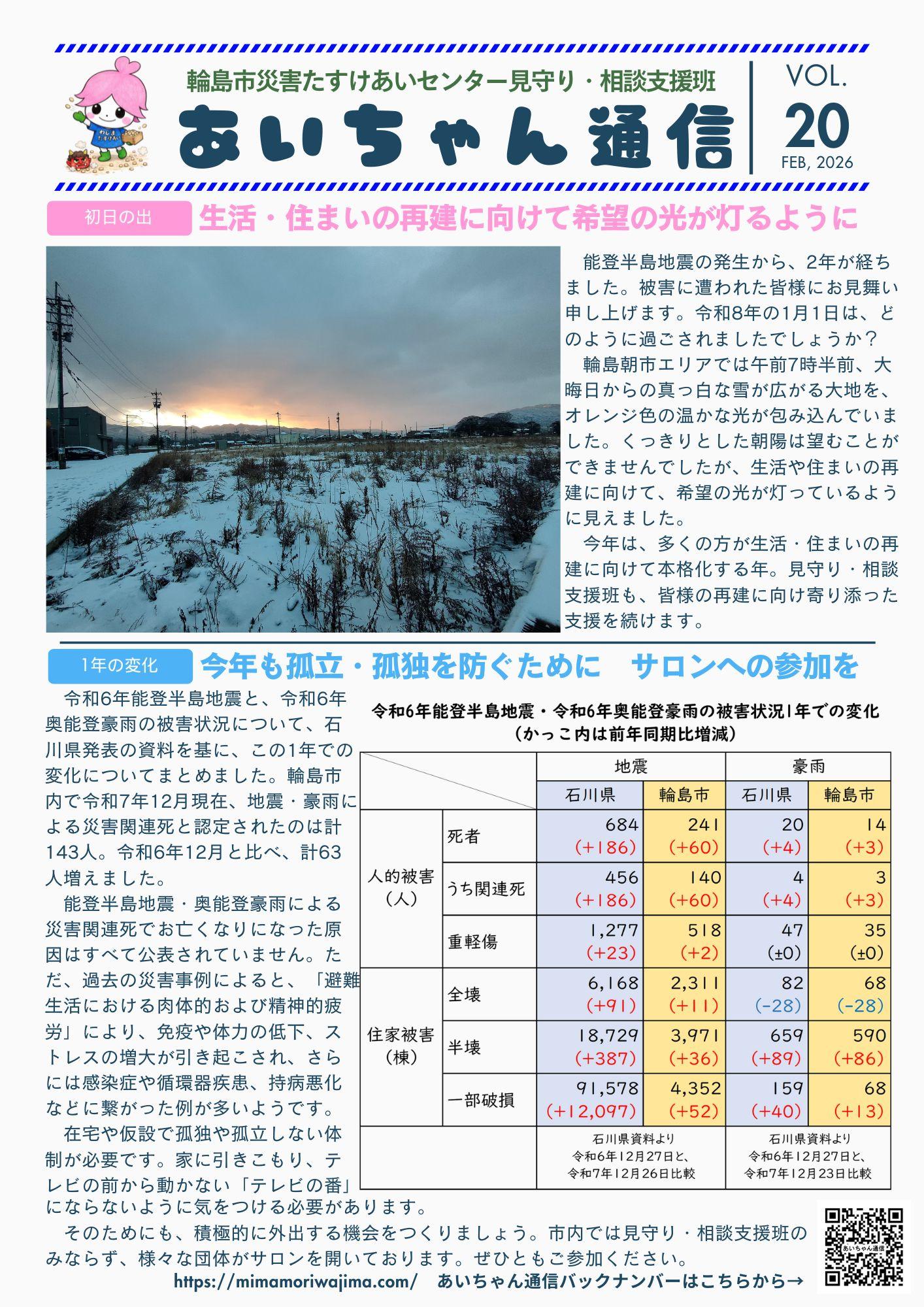 輪島市災害たすけあいセンター・見守り・相談支援班が発行する「あいちゃん通信」のこれまでのバックナンバーをご覧いただけます。